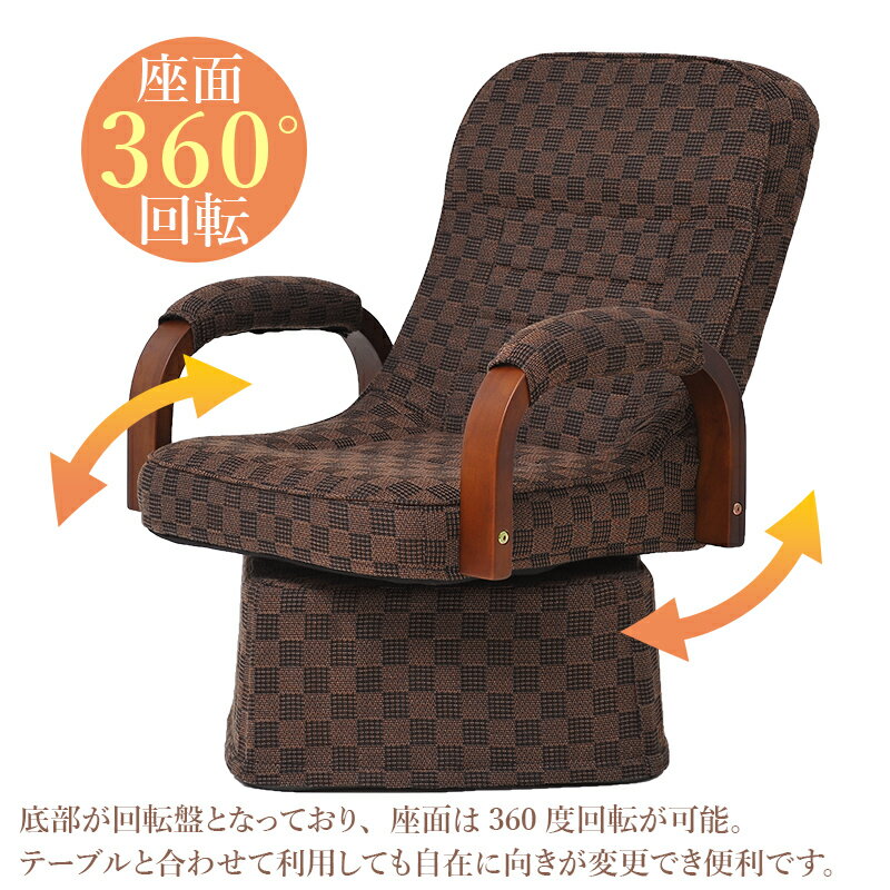 高座椅子 回転式 市松柄 おしゃれ こたつ用 背もたれ リクライニング 回転チェア 肘掛け付き 回転イス 肘付き アームチェア 和室 洋室 立ち上がりサポート 回転椅子 パーソナルチェア こたつ用高座椅子 あす楽 |